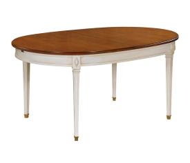 Table Ovale Extensible Louis Xvi Directoire Merisier Fonce Et Blanc Creme