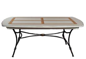 Table Fer Forge Melanie Extensible Plateau Merisier Laque Gris Perle
