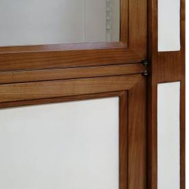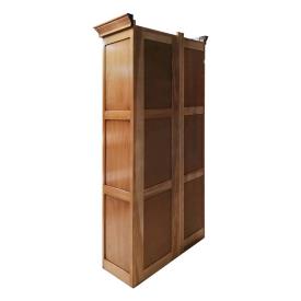 - un module de 55 cm de large avec portes basses pleines en bois et portes hautes vitrées bideautés.