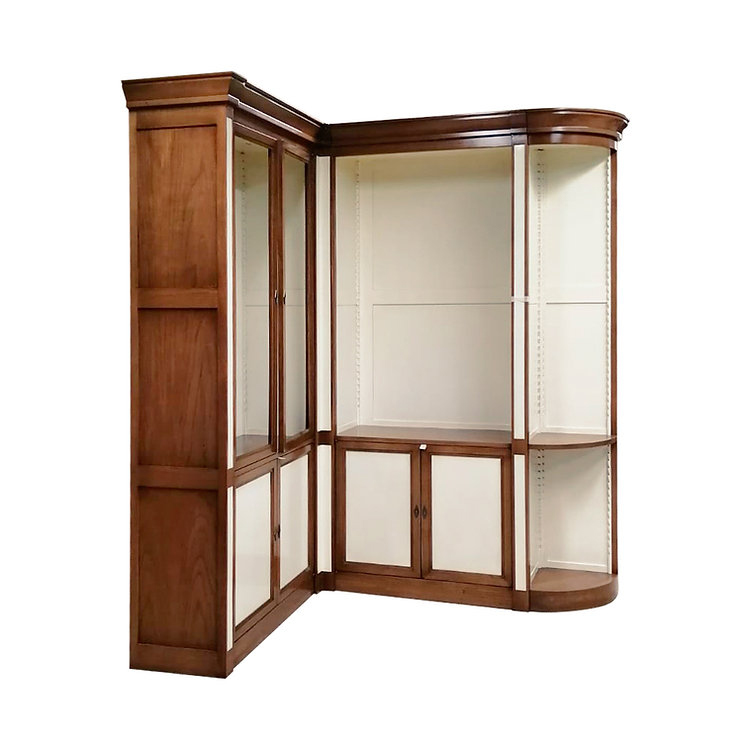 Bibliotheque Merisier En Angle Ines Finition Fumee Et Blanc Creme