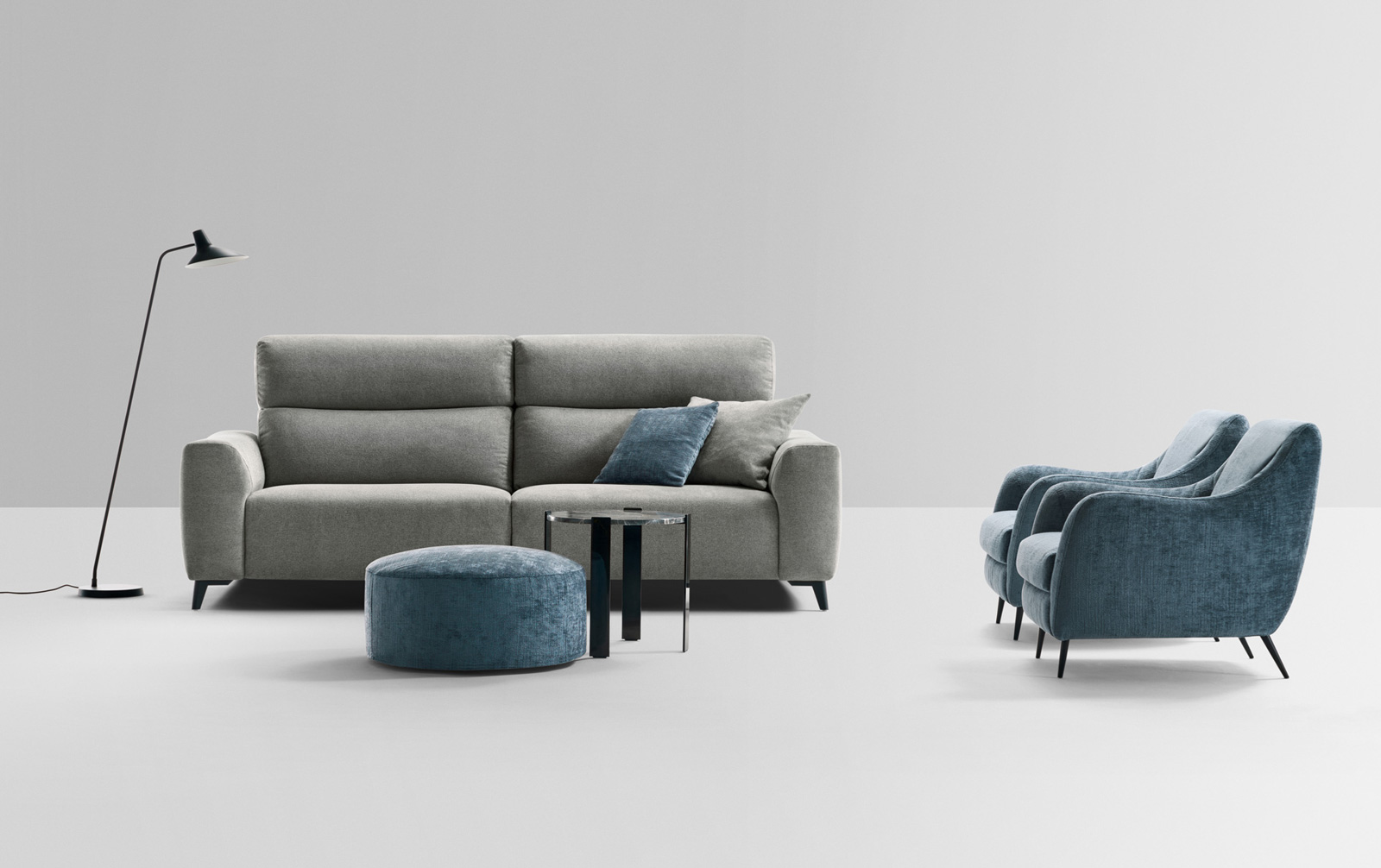 L'assise moelleuse est associée à un appui-tête ultra-confortable en mousse de silicone nacrée spéciale, un matériau qui imite le confort d'un rembourrage en plumes. Les mécanismes de relaxation sont couplés à une commande tactile discrète et pratique, garantissant un design épuré. Les pieds, hauts et légers, facilitent grandement le nettoyage des surfaces.
