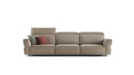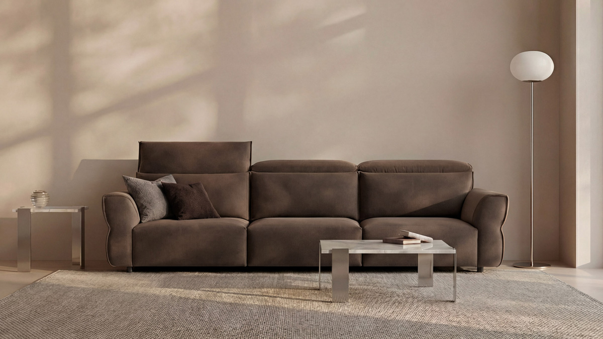 Son piètement au ras du sol et son appui-tête réglable lui confèrent une esthétique sobre et élégante. Au premier abord, il apparaît comme un canapé compact, conçu pour s'intégrer harmonieusement dans des intérieurs contemporains raffinés. Son véritable atout réside cependant dans son assise, où technologie et confort se conjuguent dans une solution de conception d'une grande valeur. La transformation est rendue possible par un mécanisme électrique coulissant qui étend l'assise de 58 cm, la rendant nettement plus profonde que les assises coulissantes traditionnelles. Il en résulte une surface large et accueillante, idéale pour transformer le canapé en une confortable méridienne ou, au besoin, en un lit pratique. Cette solution est particulièrement adaptée à ceux qui recherchent un confort maximal même dans les petits espaces, sans compromis sur l'élégance ou la fonctionnalité. Pour parfaire son design, le canapé offre un atout esthétique et fonctionnel majeur : le dossier conserve une finition impeccable, sans aucun interstice visible. Cette caractéristique lui permet d'être placé même au centre d'une pièce, préservant son élégance sous tous les angles.