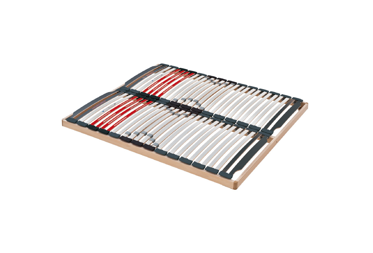 Rosini Sommier en option Sommier disponible uniquement pour les hauteurs de lit de 25/30 cm pour tous les systèmes d'ouverture ou lits fixes Caractéristiques - Cadre en contreplaqué de hêtre 70 x 25 mm, exempt de substances nocives. - Lattes en hêtre, fixées dans un support spécial en SEBS avec amortisseur de chocs. - Réglage de la rigidité au niveau des lombaires. - Fabrication sur mesure possible.