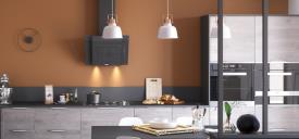 Avec ses couleurs sobres et chaleureuses, la cuisine équipée IDAO Profil joue sur les lignes grâce aux poignées profils et aux meubles hauts disposés en quinconce. Ces derniers sont parfaits pour y ranger assiettes et vaisselle de tous les jours.