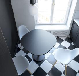 Qui a dit qu'une petite cuisine ne pouvait pas être fonctionnelle ? L'espace est maximisé grâce à tout un linéaire de plan de travail qui offre une surface de préparation conséquente. La crédence et le plan de travail en Fenix® blanc de lait seront faciles à entretenir. Les meubles relevants et les nombreux tiroirs coulissants assurent un accès facile au rangement.